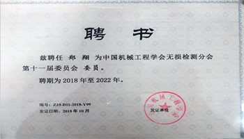亞泰光電鄭總當選中國機械工程學會無損檢測分會第十一屆委員會委員