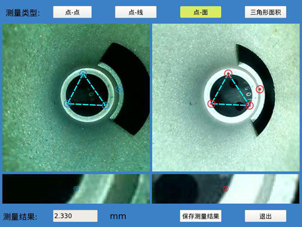 三維測(cè)量系統(tǒng),可通過(guò)點(diǎn)到點(diǎn),點(diǎn)到線、點(diǎn)到面、面積測(cè)量等方式精準(zhǔn)測(cè)量缺陷的尺寸。