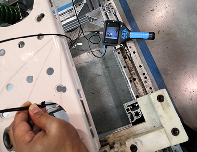 本項目需求引入自動化檢測設備,用以檢測電氣開關機械擋卡安裝位置是否到位。主要是與客戶方試驗并確認亞泰內(nèi)窺鏡探頭拍攝位置,演示內(nèi)窺鏡直管3mm側視鏡頭拍攝效果,并確定最終內(nèi)窺鏡檢測實施方案。