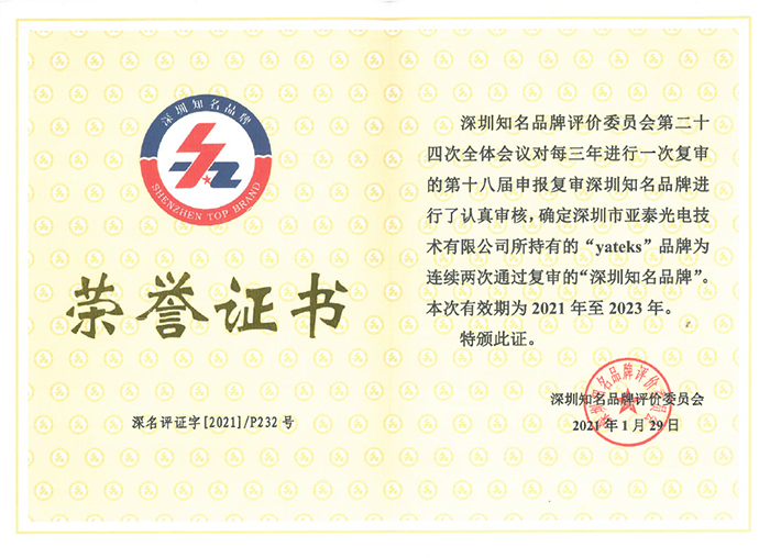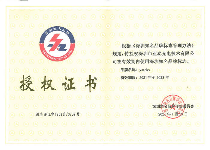 隨后,羅琪琳部長將標(biāo)志著中國優(yōu)質(zhì)品牌符號的“深圳知名品牌”證書及牌匾交到了市場相關(guān)負(fù)責(zé)人手上,這份承載著評委會對亞泰光電產(chǎn)品和服務(wù)質(zhì)量水平充分肯定,與社會公眾對于亞泰光電品牌發(fā)展認(rèn)可和期許的榮譽(yù),將更加促進(jìn)亞泰光電的發(fā)展進(jìn)程和管理水平上升到更高、更新的臺階。