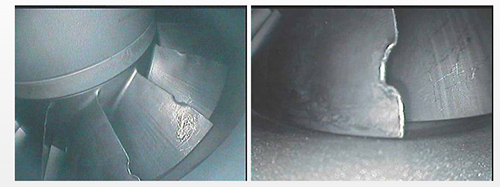 左邊圖片是對(duì)管子的檢測(cè)圖像采集,上圖很明顯的可以看到管子內(nèi)部存在著起皮。右邊圖可以看到管子內(nèi)部已經(jīng)被腐蝕。