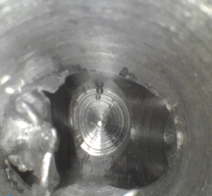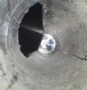 客戶地處華南區,主營手機、電池、電腦配件等相關配套部件,客戶方用內窺鏡檢測的是其生產的鋁合金機加工件,用于手機后蓋壓模用,客戶生產手機后蓋時,會用到磨具,他們內部稱鋁合金機加工件,上面交錯孔大小不一,主要用內窺鏡看內部的破孔處毛刺等情況。