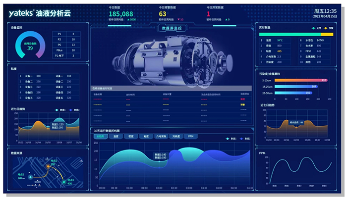 潤滑系統內實時監測潤滑油粘度、密度、水分、污染度、酸值、堿值等各項詳細理化指標,提前預知設備的潤滑狀態