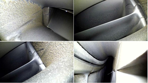主要包括以下幾個方面:渦扇葉片的損傷和燒蝕情況,燃燒室內的噴嘴積碳,火焰筒內壁、穩定器、燃油噴嘴防積碳帽罩表面的積碳。