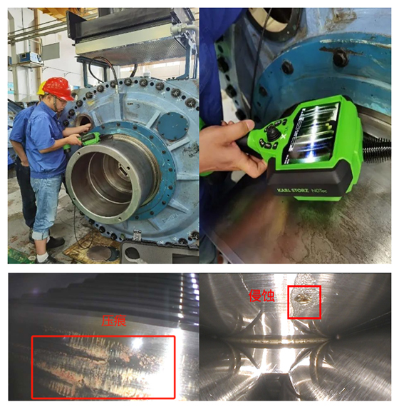 案例3?:國內某知名生產高、低速重載齒輪箱為主的企業(yè)使用亞泰ZIE620內窺鏡對風電齒輪箱出廠前星輪、太陽輪等的檢查,保證出廠質量100%合格交付到工程單位。